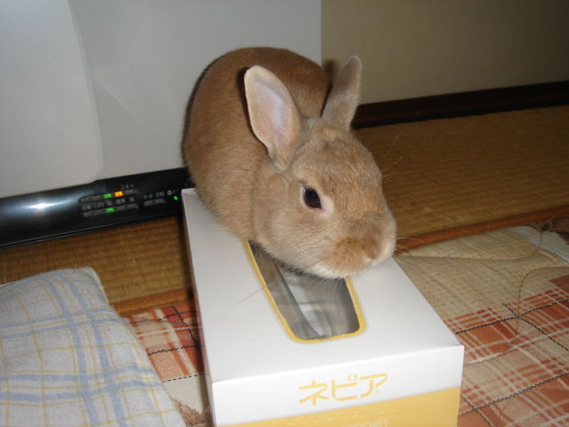 2006-02-16 くーちゃんティッシュ遊びに夢中になる クーちゃん(ウサギ)2005-2011没 くーちゃんってホントにティッシュ遊びが大好きなのだ~ ほっておくといつまでもティッシュ箱で遊んでいる この日も顔を突っ込んだりカミカミしたりして ティッシュボックスに夢中になっていた なんて安上がりで良い子なのだ