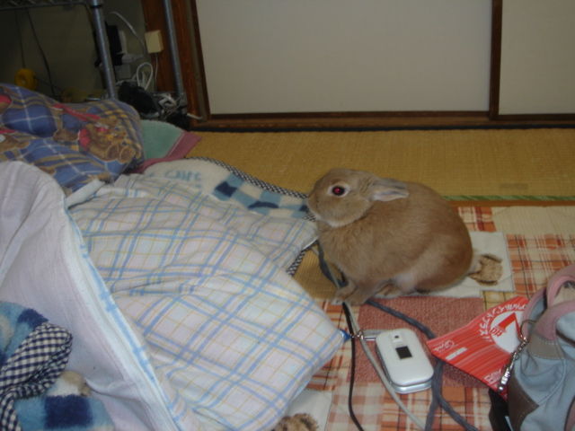 2006-04-27 くーちゃんたたずむ クーちゃん(ウサギ)2005-2011没 くっくーは1人遊びに飽きるとわたしの横にきて まるで考え事をしてるかのよーにしばしたたずんでいる 呼んでも気付かないくらいに物思いにふけっている まるで心の中で詩でもつぶやいているかのよーなのだ