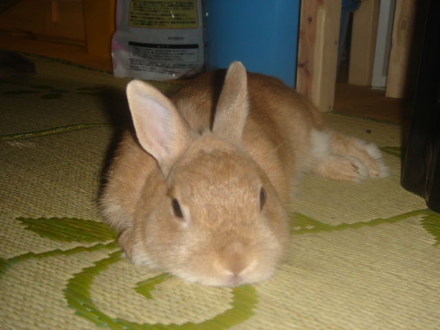 2006-05-22 暑いのだ クーちゃん(ウサギ)2005-2011没 昨日は夫が出張で1人寝だったからゆったりと布団を2枚かぶってねたら… 夜中に暑くて目が覚めたのだ やっぱもう初夏なんだなぁ~~と感じたけど 夜中に襖をあけるのは何かがいたら怖かったので我慢して 布団をはだけながら寝ていたのだ そして夜も開け10時頃くっくーがエサを要求する騒音で目が覚めたのだ くっくーは最近めずらしくよく食べるのだ