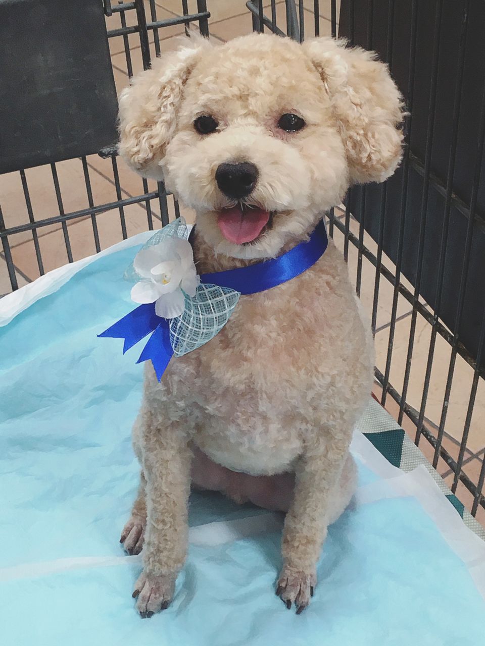 2019-10-13 トリミングデーと白桃パフェ トリミング ゴッくん(犬) 今日はトリミングデーでした。画像はアフター。ブルー系の大きなリボンがかわいい。カインズでハロウィンの顔はめがあったのでニゴくんもチャレンジ。なんか怯えていました…。おばけの顔ハメなのに。今年の夏はミニストップの白桃ハロハロを毎週欠かさず食べていたんですがそれも販売終了したので最近はこの白桃パフェを毎週食べています!!桃は本当に美味しい!!でもこの白桃パフェも季節的にそろそろ終わりなんだろうな…。終了するまで食べるぞ。