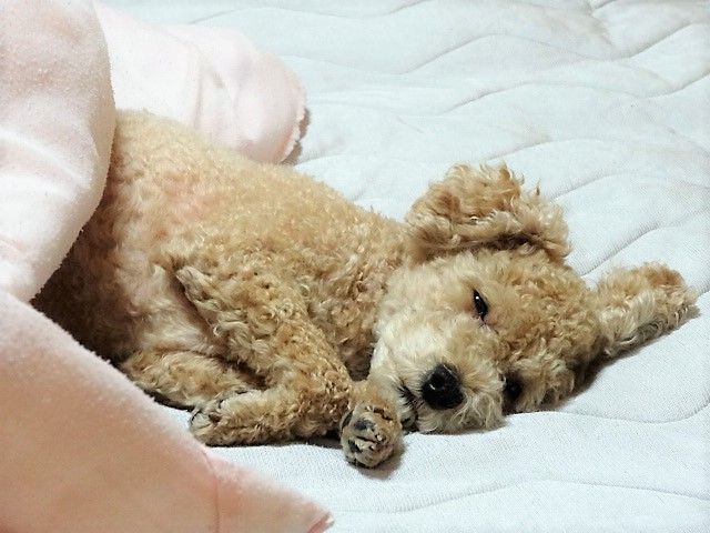 何日か前の散歩から帰宅後のおねむなニゴくん。