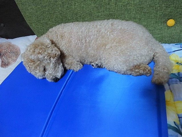 最近は暑いので早朝散歩(朝6時前)に切り替えているので今はおねむなニゴくん。