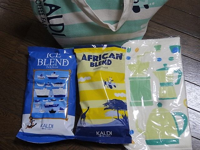 2019-07-07 カルディ 夏のコーヒーバッグ 雑記 コーヒーがもうなくなるのでカルディに行ったら夏のコーヒーバッグが売っていたので買いました。なんだかんだでカルディのコーヒーバッグは毎回買ってしまう…。アイスコーヒーとアフリカブレンドと吸水マットのセットです。アフリカブレンド前に飲んだ時美味しかったような記憶がある。アイスブレンドもホットでも飲めるので買いました。吸水マットは正方形。さっそく使用しています~。バッグはファスナー付きの保冷バッグです。こういうバッグって使うことがないので過去に買った分もかなりたまってます…。